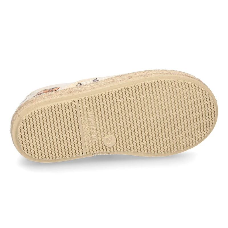 Con plantilla acolchada y perforada en algodón, para la correcta transpiración de sus pies y una mayor comodidad. Suela o piso de goma de primera calidad, revestido con yute. Suela antideslizante y totalmente flexible para que ellos aprendan a caminar y puedan jugar sin problemas.