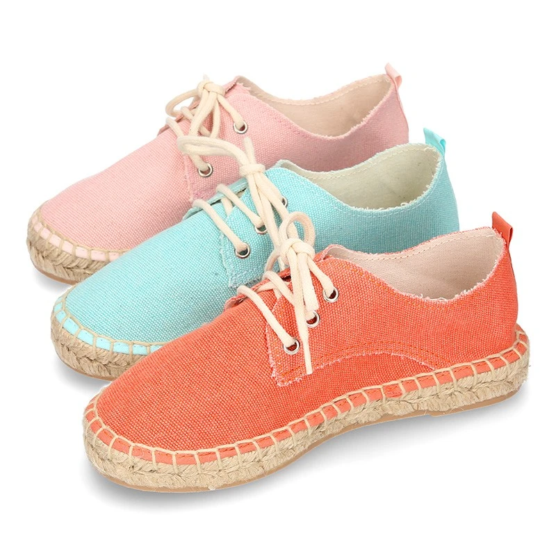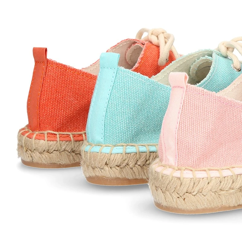 Alpargata tipo blucher con cordones en lona algodón efecto lavado para niños y papá o niñas y mamás. Realizadas en lona 100% lona granito algodón natural de primera calidad. Completamente forrados en algodón y con cordones que garantizan una mayor sujeción y le confieren un efecto más tradicional y artesanal. Lona granito algodón con acabados de primera calidad y en colores de plena tendencia. Un básico totalmente renovado y actualizado para combinar con todos sus looks esta primavera-verano y especialmente en ocasiones especiales. Perfectas para la primavera – verano porque combinan con todo. Son muy cómodas y confortables.