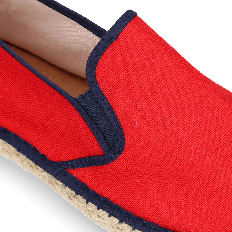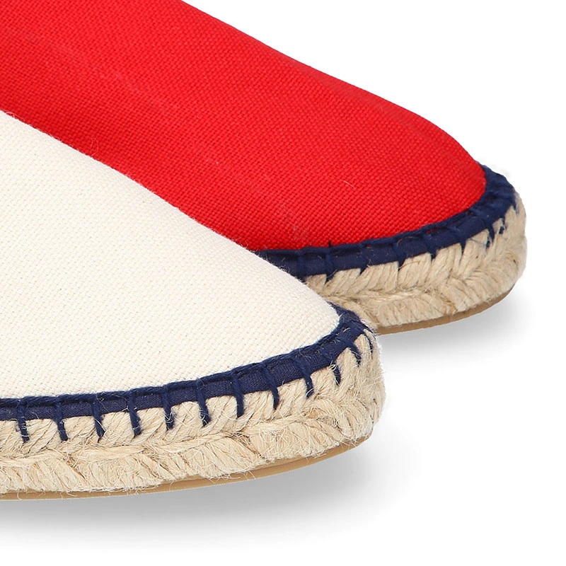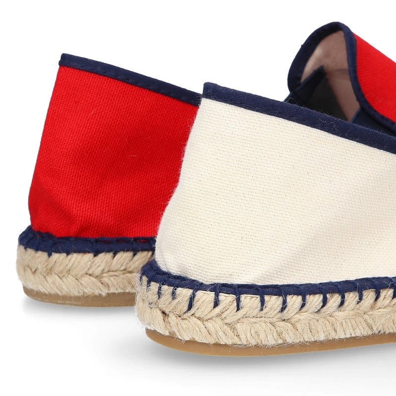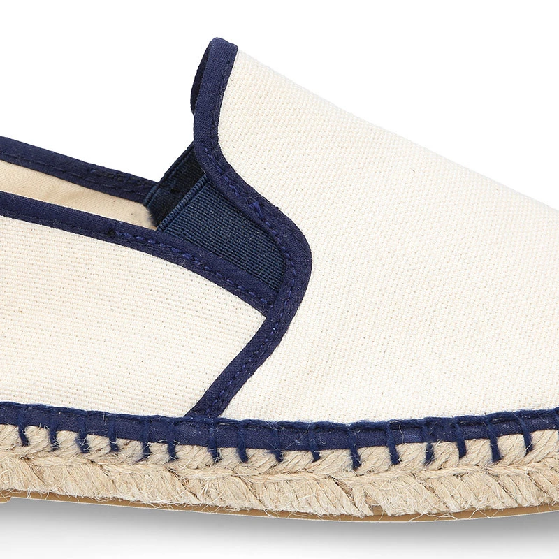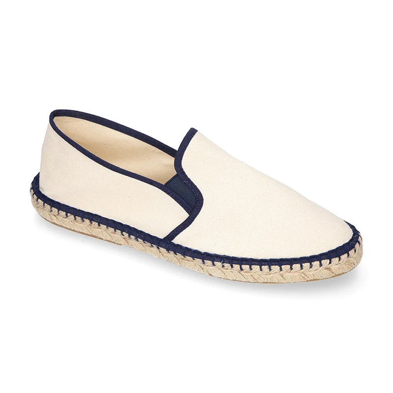 Alpargata clásica tipo camping en lona combinada con elásticos laterales para toda la familia. Realizadas en lona 100% de algodón granito natural de primera calidad. Completamente forradas y con elásticos laterales que garantizan una mayor sujeción y una mayor comodidad al poner y quitar. Nuevo diseos muy elegante y con acabados de primera calidad. Un básico totalmente renovado y actualizado. Perfectas para la primavera – verano porque combinan con todo. Son un modelo muy de Moda.