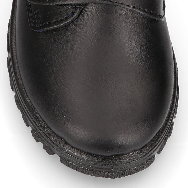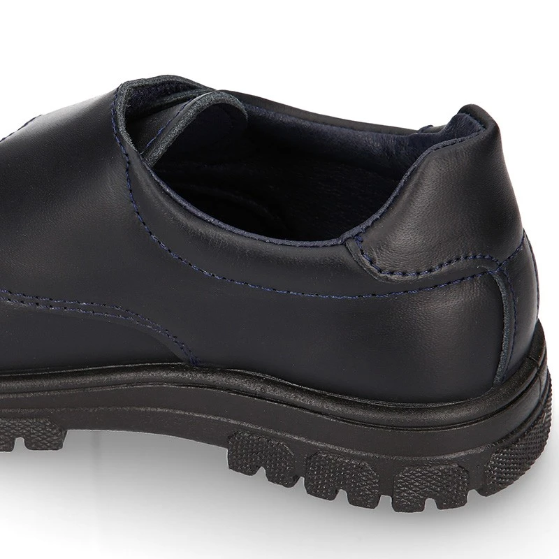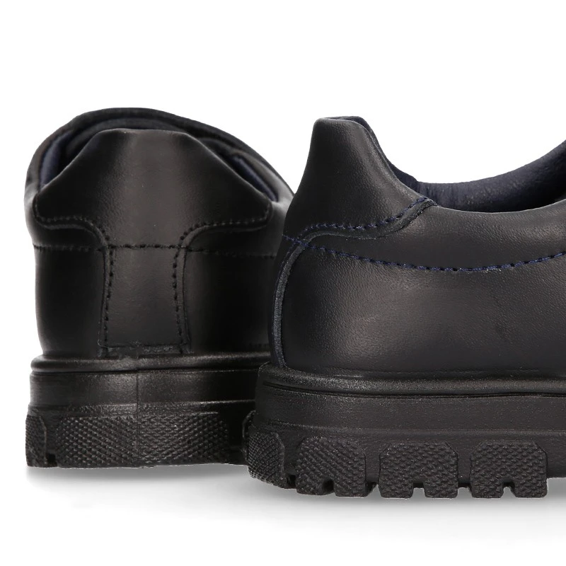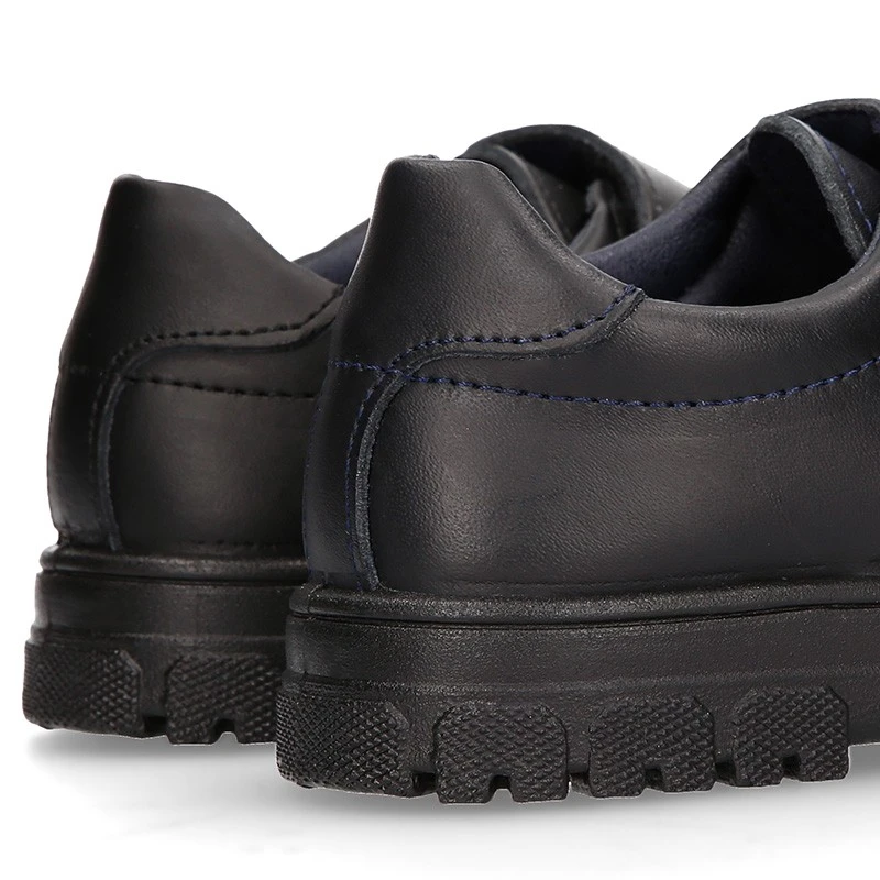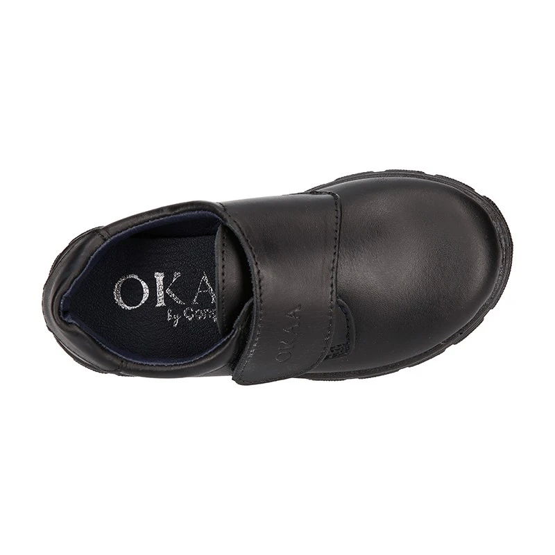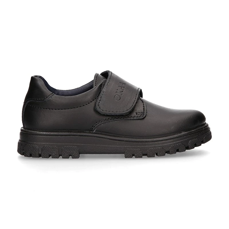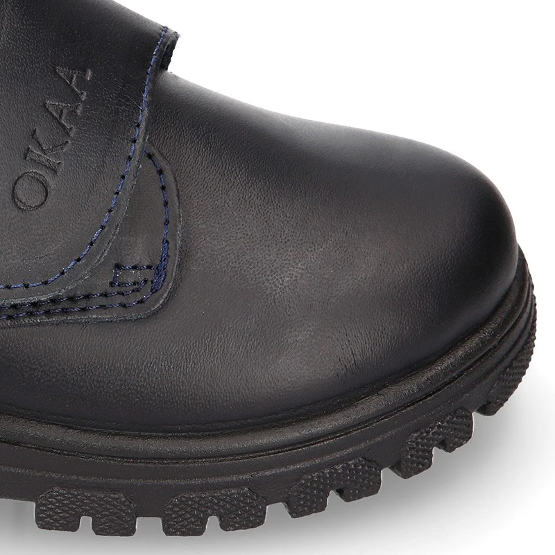 Más información sobre Blucher colegial niño OKAA sin cordones con suela de goma dentada en piel lavable.
