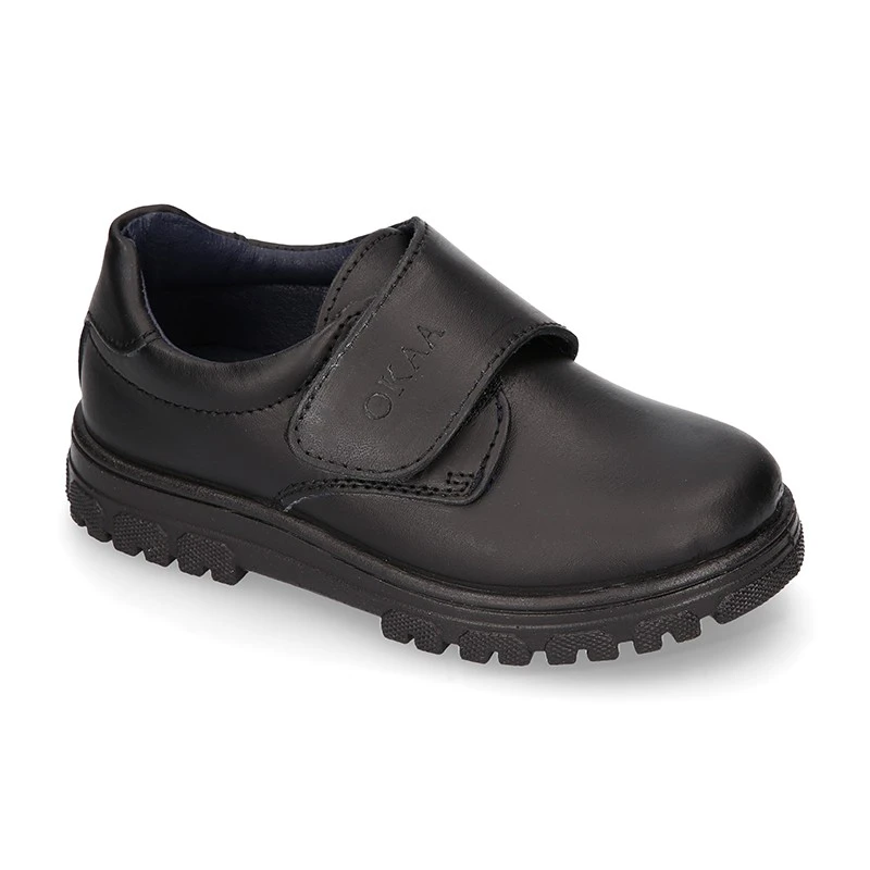 Nuevo Zapato para el colegio tipo Blucher OKAA, con cierre adherente y suela de goma dentada en piel lavable para niños. Realizado en 100% piel natural de primera calidad y lavable. Piel PREMIUM con tratamiento hidrofugado que no se raya para evitar la lluvia y que permiten lavarse en la lavadora. Perfectos para el colegio este otoño/invierno. Con suela de goma dentada gruesa lo que los convierte en muy resistentes y duraderos para todos sus movimientos y juegos. Los colegiales más confortables y resistentes para tus hijos por su ligereza y flexibilidad. Colección exclusiva para OKAA fabricada por Conguitos, con materiales de altísima calidad y las mejores innovaciones tecnológicas en calzado infantil.