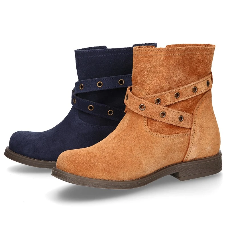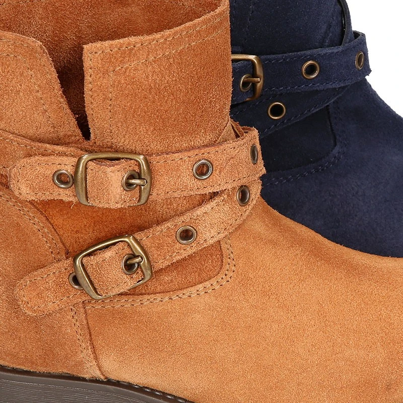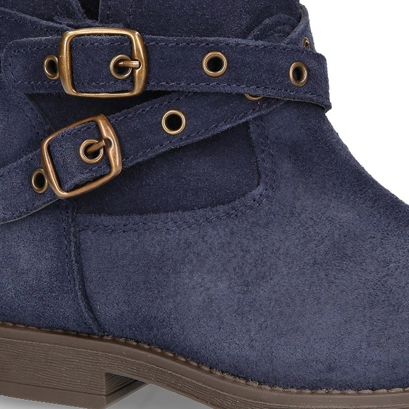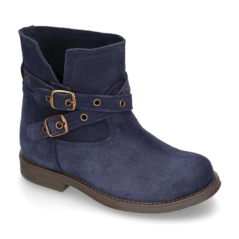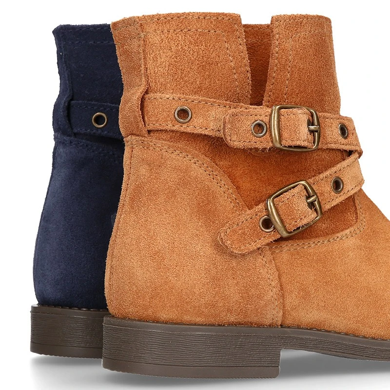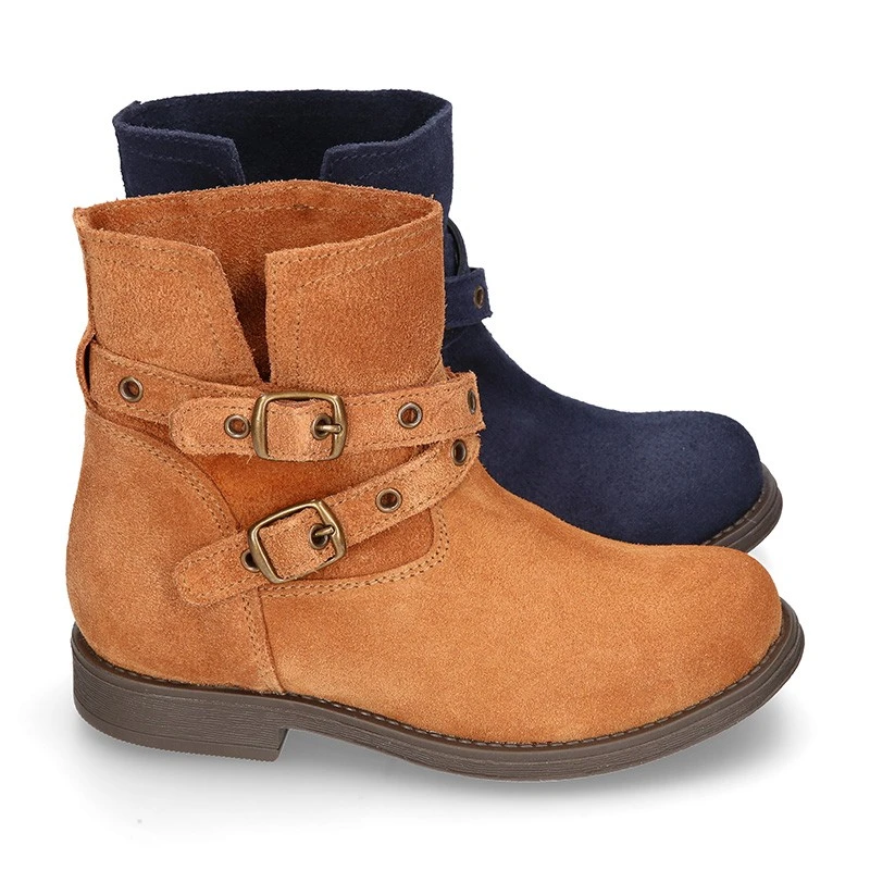 Botín montado y fabricado al estilo campero para vestir, como los de toda la vida, con cintas laterales con hebillas en piel serraje para niñas y mamás. Realizados en piel 100% natural serraje de primera calidad. Muy modernos y muy combinables con toda la ropa más casual este otoño-invierno. Son un modelo muy elegante para vestir como las botas camperas de toda la vida pero con un diseño totalmente actualizado y renovado con diseño con hebillas. Muy prácticos y confortables para esta temporada. Con cierre con hebillas y cintas laterales para una mayor adaptabilidad a todo tipo de empeines. Son un modelo clásico, pero totalmente nuevo y muy combinable con todos los looks de esta temporada.