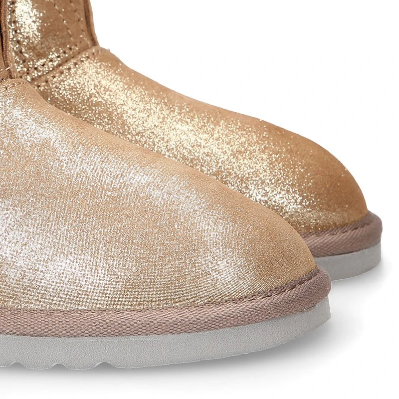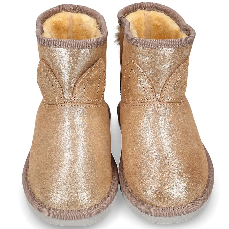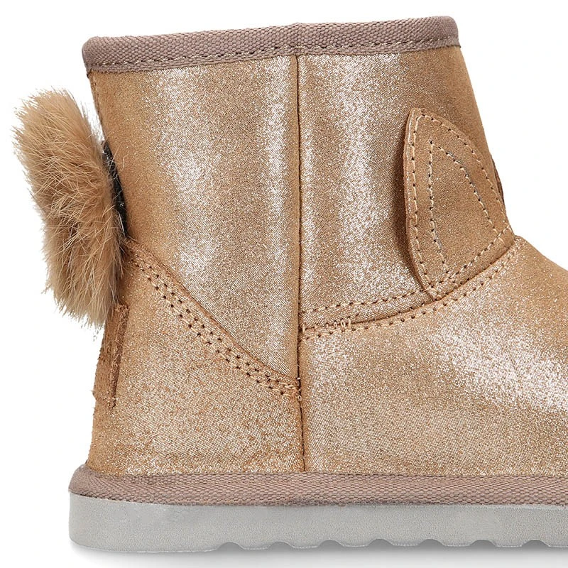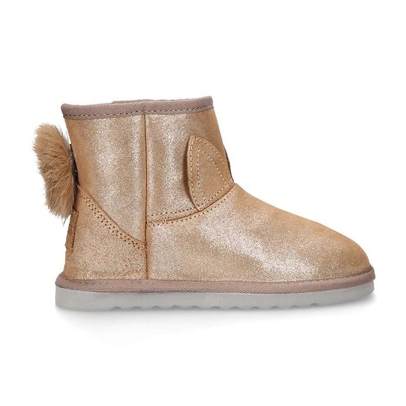 Más información sobre Botita niños tipo Australiana con POMPÓN Y OREJAS en piel serraje púrpura.