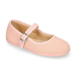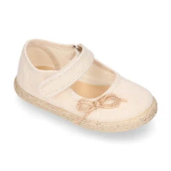 Alpargata Niña Tipo Mercedita Con Cierre Adherente Con Lazo En Lino Natural.