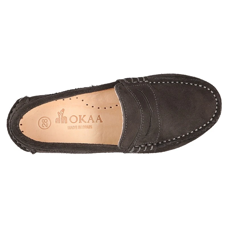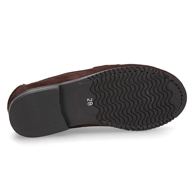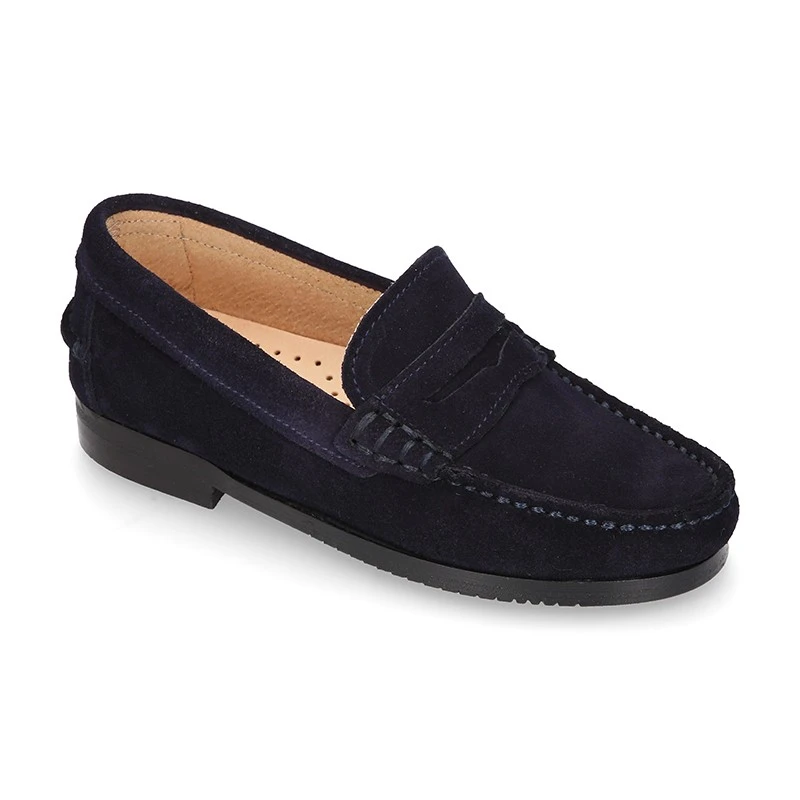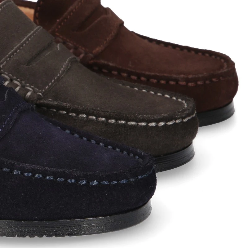 Zapato Mocasin clásico con antifaz y suela de goma gruesa en piel serraje para otoño-invierno para niños mayores y papás también. Realizado en 100% piel serraje natural de primera calidad. Perfectos para sport o para vestir este otoño-invierno. Son un modelo clásico pero totalmente renovado en horma y diseño. Son muy elegantes. Es un modelo con un nivel de calidad muy elevado.