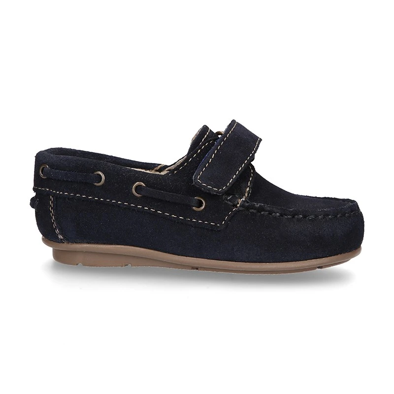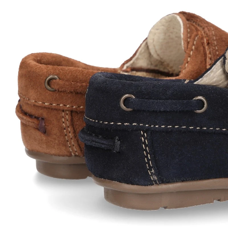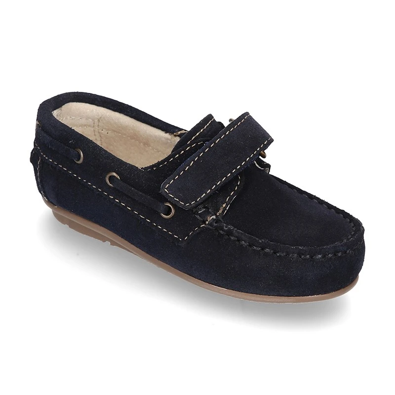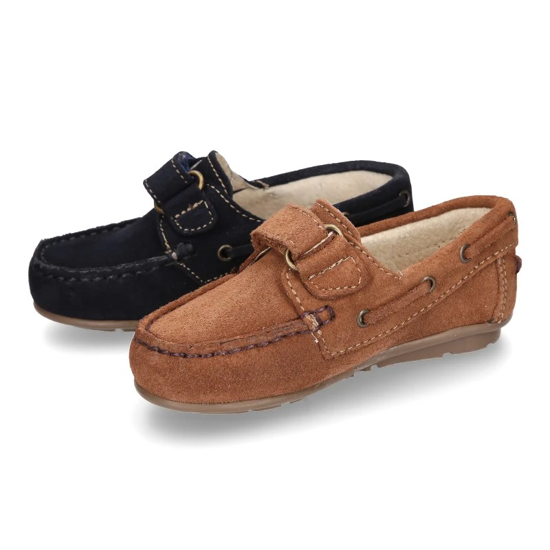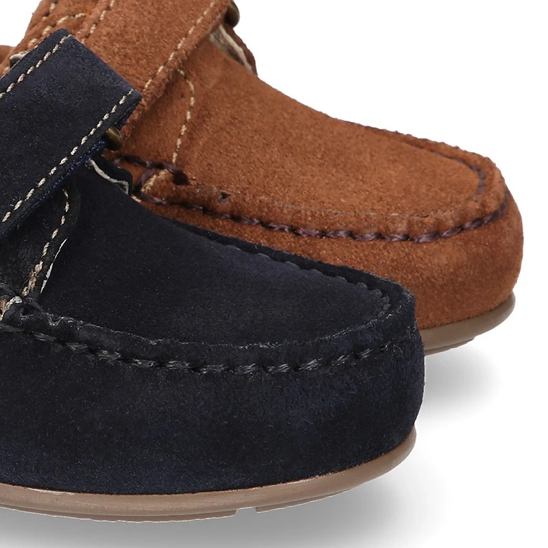 Zapato Mocasín con cierre adherente y piso conductor en piel serraje para niños. Realizado en 100% piel natural serraje de primera calidad. Es una piel muy blandita y de muy buena calidad y perfecta para un SPORT casual esta temporada. Perfectos para un vestir casual o para ocasiones especiales esta primavera-verano. Son muy elegantes y combinan con cualquier look esta primavera-verano. Con cierre adherente para una mayor comodidad y una mayor sujeción. Son un modelo muy blandito y suave.