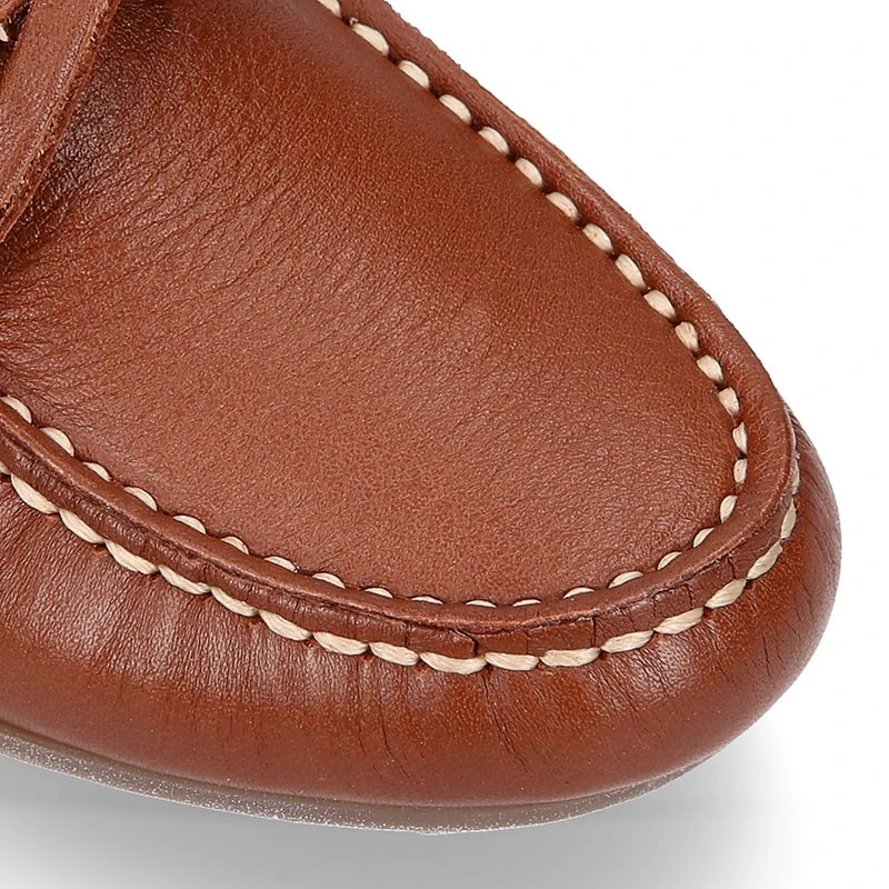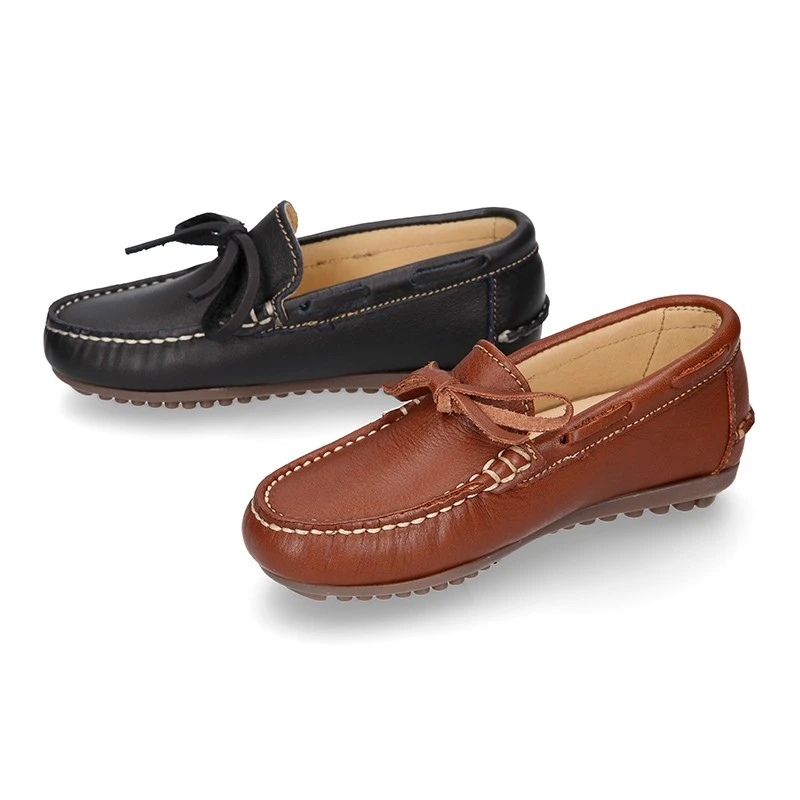 Zapato Mocasín con lazos y suela tipo conductor en piel napa EXTRA SUAVE para niños. Realizado en 100% piel natural napa de primera calidad con acabado muy suave y blandito. Perfectos para sport o para vestir. En colores muy combinables con toda su ropa esta primavera-verano. Son muy cómodos y confortables. Modelo de muy alta calidad.