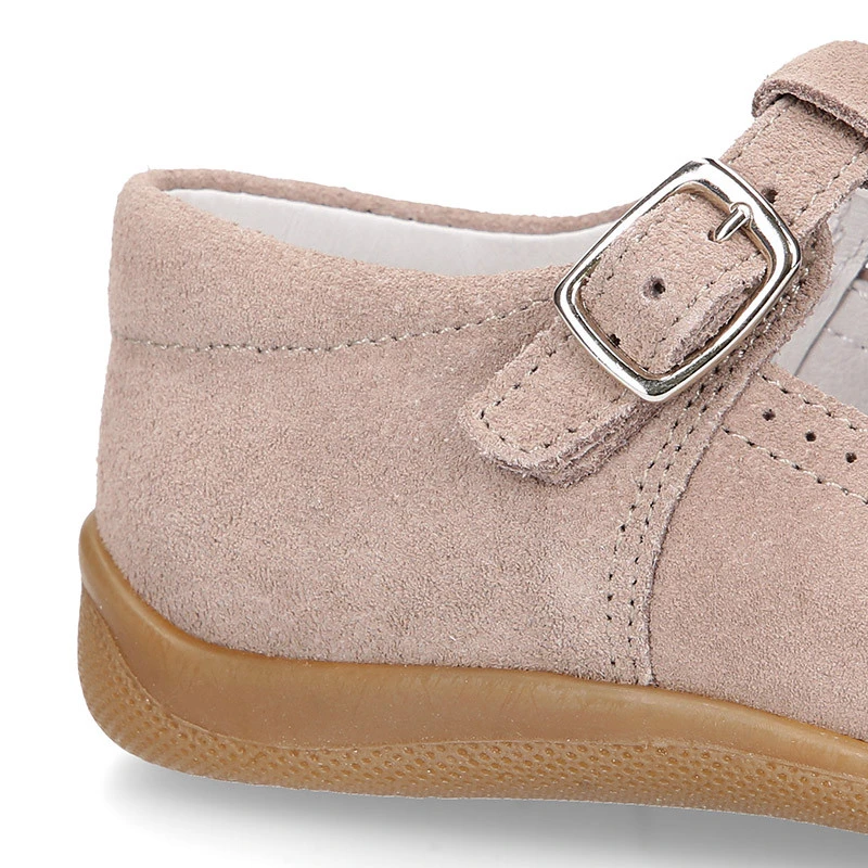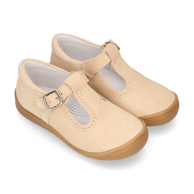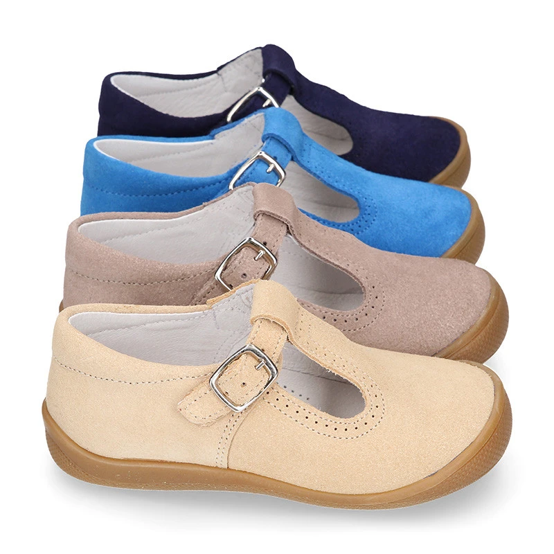 Zapatito clásico tipo pepito con cierre de hebilla con puntera, talonera y suela SUPER FLEXIBLE para niños en piel serraje. Muy cómodos, confortables y muy prácticos. Realizados en 100% piel serraje natural de primera calidad. Son muy elegantes y combinan con toda su ropa. Un clásico de siempre totalmente actualizado y renovado. Forrados totalmente en piel, con plantilla anatómica que facilita el crecimiento evolutivo de sus pies y perforada para la correcta transpiración de sus pies. Suela o piso de de goma de primera calidad antideslizante y totalmente flexible para que ellos aprendan a caminar sin problemas.