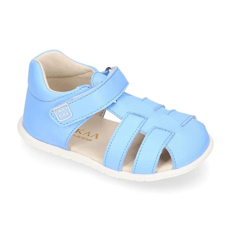 Nueva Sandalia OKAA FLEX para vestir con cierre adherente, mucho más ligera y flexible para niños y niñas pequeñas en MICRO PUNTO SUAVE LAVABLE y en colores de temporada. Realizadas en 100% lona textil micro punto suave que imita a la piel, totalmente transpirable y lavable, de primera calidad con acabado suave y en colores de temporada. Perfectas para vestir de manera muy elegante, confortable y muy dulce esta Primavera-Verano. Con cierre adherente para una mayor comodidad y para facilitar una mayor autonomía de los peques. Horma muy redondita para una mayor libertad de movimiento de los dedos de los más pequeños. Con diseño con puntera para una mayor comodidad. Nueva colección exclusiva OKAA FLEX, con modelos especialmente ligeros, flexibles y blanditos para los más pequeños.