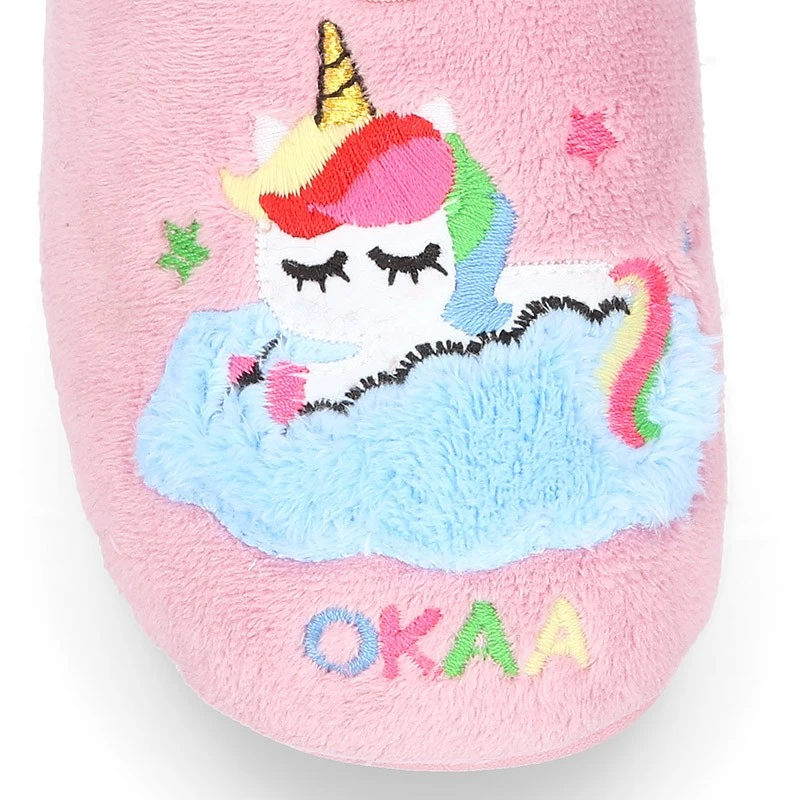 Más información sobre Zapatilla casa niñas OKAA UNICORNIO con elástico en lana.