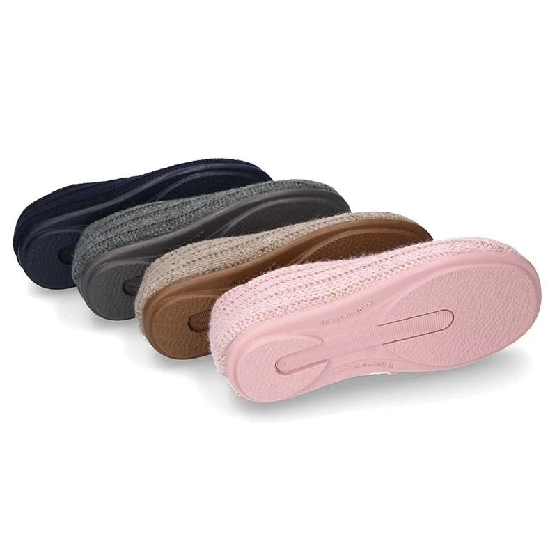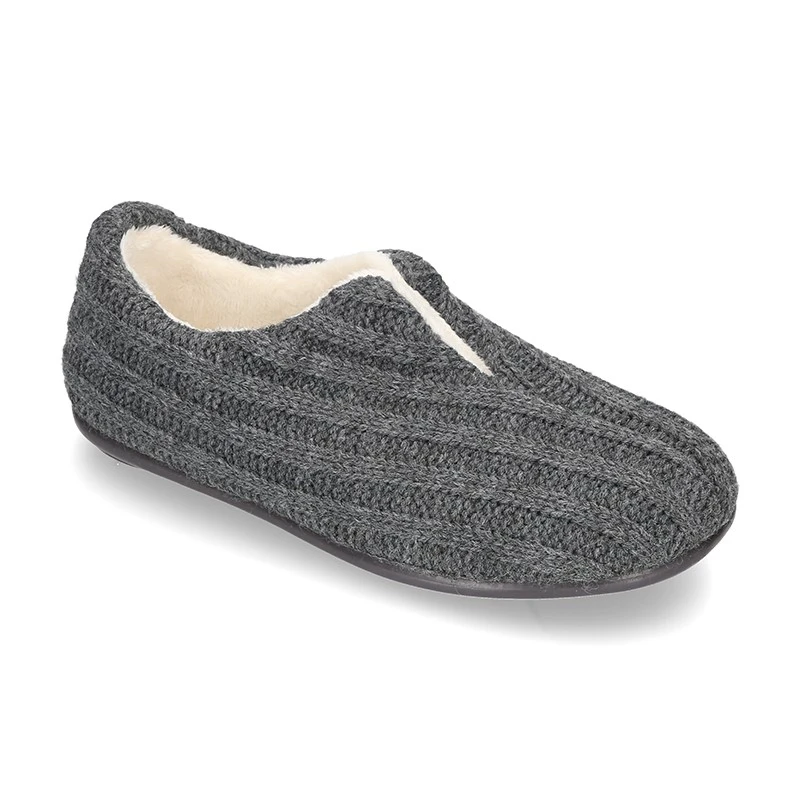 Zapatillas para casa cerradas con abertura central en tejido efecto lana con canalé para niños, niñas y mamás. Realizadas en 100% textil efecto lana con canalé y acabados de primera calidad. Muy confortables y calentitas para estar en casa este Otoño invierno. Con abertura central para una mayor comodidad de poner y quitar.