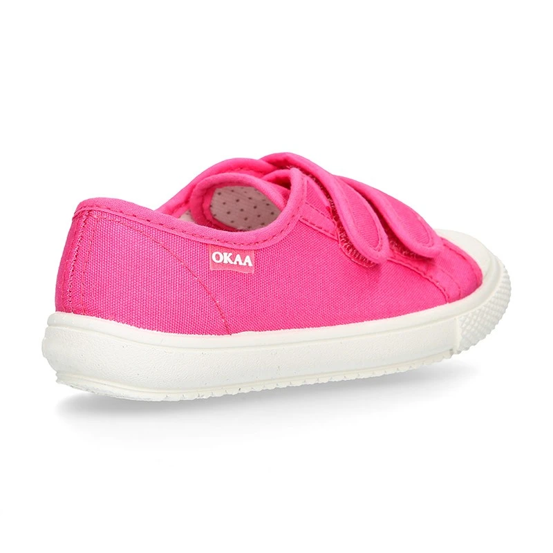 Más información sobre Zapatilla niña OKAA sin cordones y puntera en lona piqué algodón.