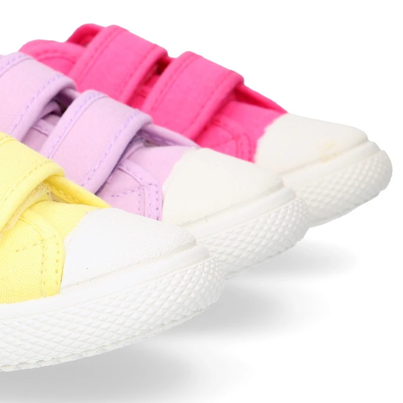 Zapatilla tipo tenis OKAA en lona piqué algodón en colores de moda con doble cierre adherente y diseño con puntera para niñas. Realizada en lona 100% algodón natural piqué y acabados de primera calidad en colores de moda como el limón o el malva. Perfectas para el día a día. Muy cómodas y confortables para esta primavera-verano. Son perfectas para coles, campamentos o para combinar con cualquier look casual esta temporada. Con doble cierre adherente para una mayor sujeción y adaptabilidad a todo tipo de pie. Con diseño con puntera para una mayor durabilidad. En colores de moda como el limón o el malva, de plena tendencia esta temporada en todas las colecciones infantiles.