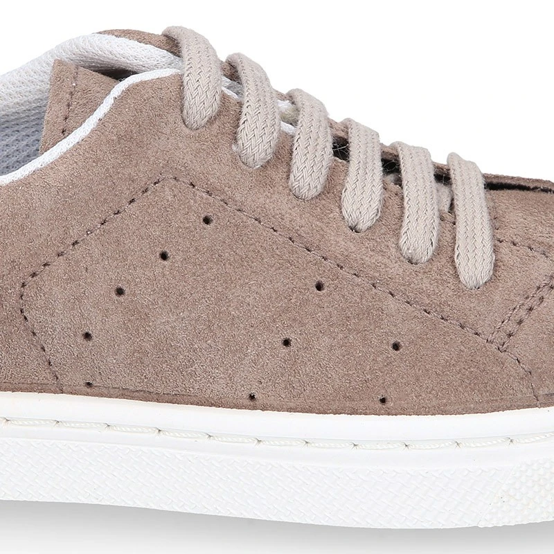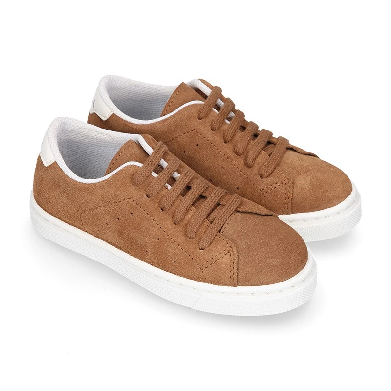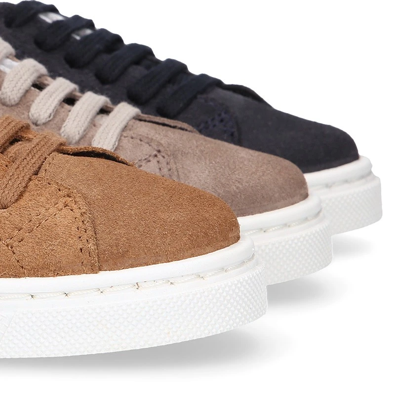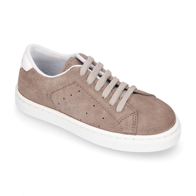 Nueva Zapatilla o deportiva OKAA para vestir con cordones en piel serraje para niñas y niños. Realizadas en 100% piel serraje natural de primera calidad y en colores súper combinables como el gris marengo o el visón. Con diseño exclusivo OKAA con talonera para conferirles un efecto más elegante y de más tendencia casual este otoño-invierno. Perfectas para vestir de manera casual muy elegante y confortable en cualquier temporada del año. Es muy resistente y confortable con todos sus movimientos y juegos. Con cierre con cordones para una mayor sujeción. Diseño de calidad muy alta y fabricado por la mejor fábrica de calzado infantil de nuestro país. COLECCIÓN EXCLUSIVA OKAA.