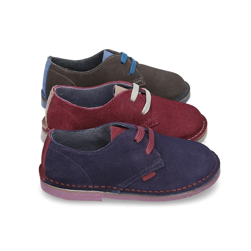 Nuevo Zapatito tipo Blucher para vestir con lengüeta, cordones y suela combinada en piel serraje para niños y papás. Realizado en 100% piel serraje natural de primera calidad. Es un modelo nuevo del clásico zapatito inglés con diseño con lengüeta, cordones y suela combinado. Son un modelo muy elegante para vestir en ocasiones especiales o para el día a día con cualquier look informal este Otoño-invierno. Son un modelo totalmente renovado y actualizado del clásico Blucher.