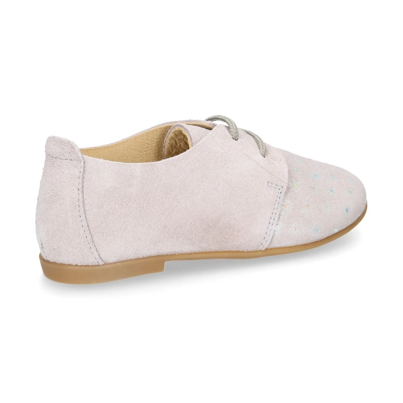 Más información sobre Zapatito tipo Blucher primavera con cordones en serraje con destellos.